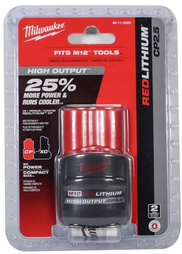 Milwaukee 48-11-2425 M12 12 V 2.5 Ah Lithium-Ion High Capacity Battery Pack 1 pc - $30
