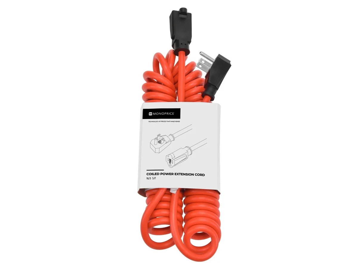10 Monoprice Coiled Power Extension Cord 16AWG, 13A, SJT $7 Free S/H on $39