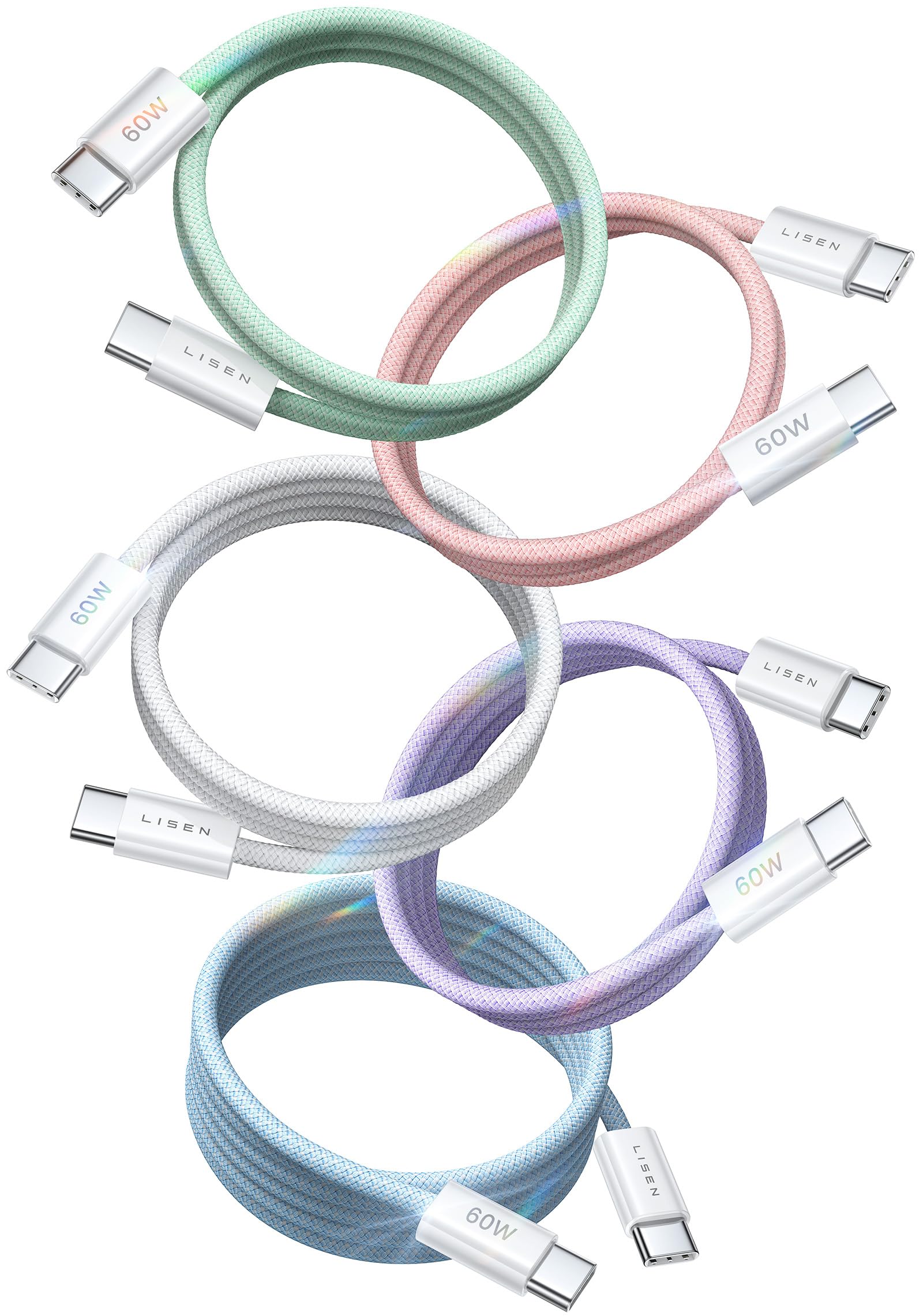 5-Pack Lisen Multi-Colored 60W USB-C to USB-C Chargers x2 3.3ft, x2 6.6ft, x1 10ft $8.23 Free Shipping w/ Prime or Order