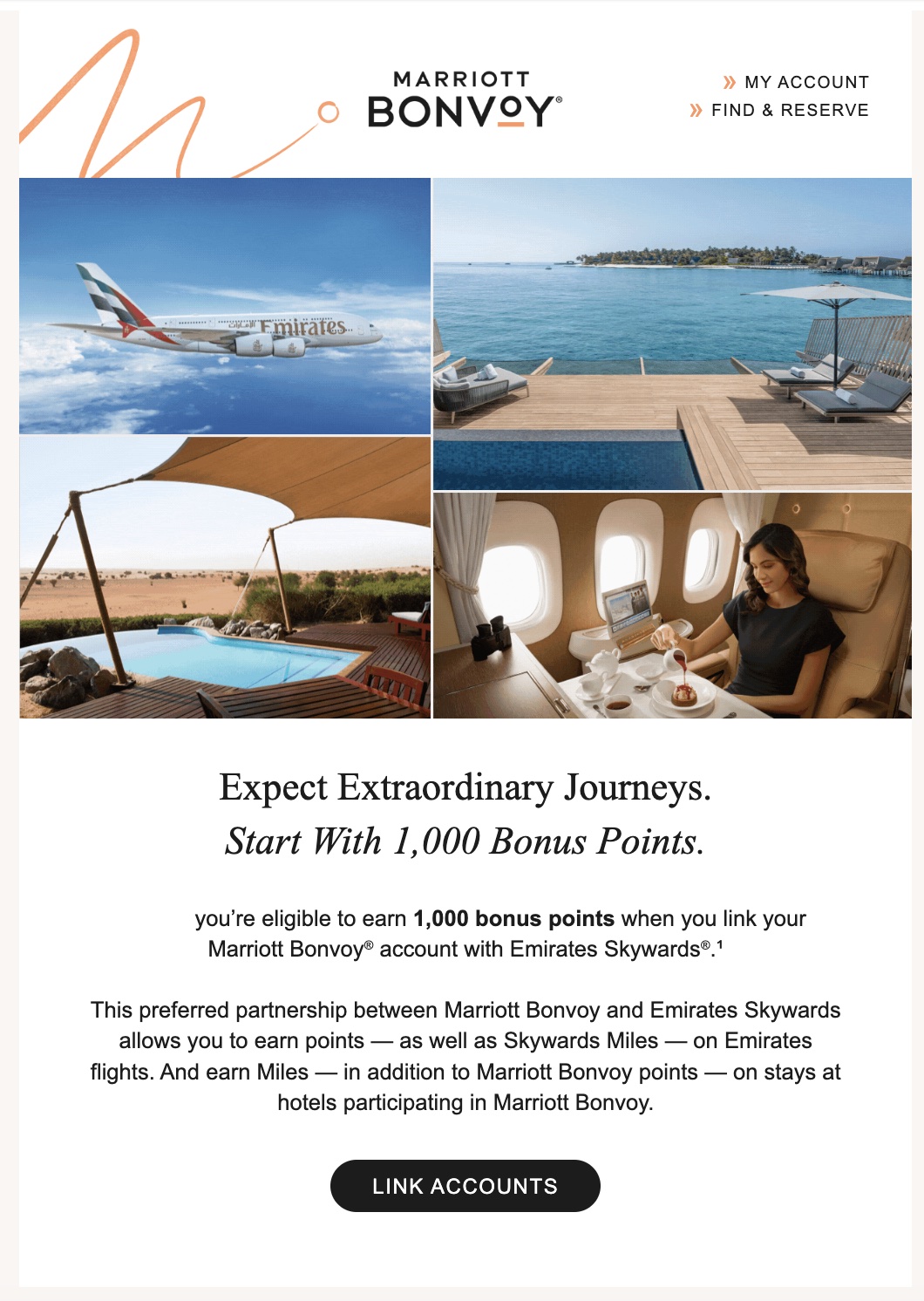 YMMV Earn 1000 Marriott points when you link your Marriott Bonvoy account with Emirates Skywards targeted offer