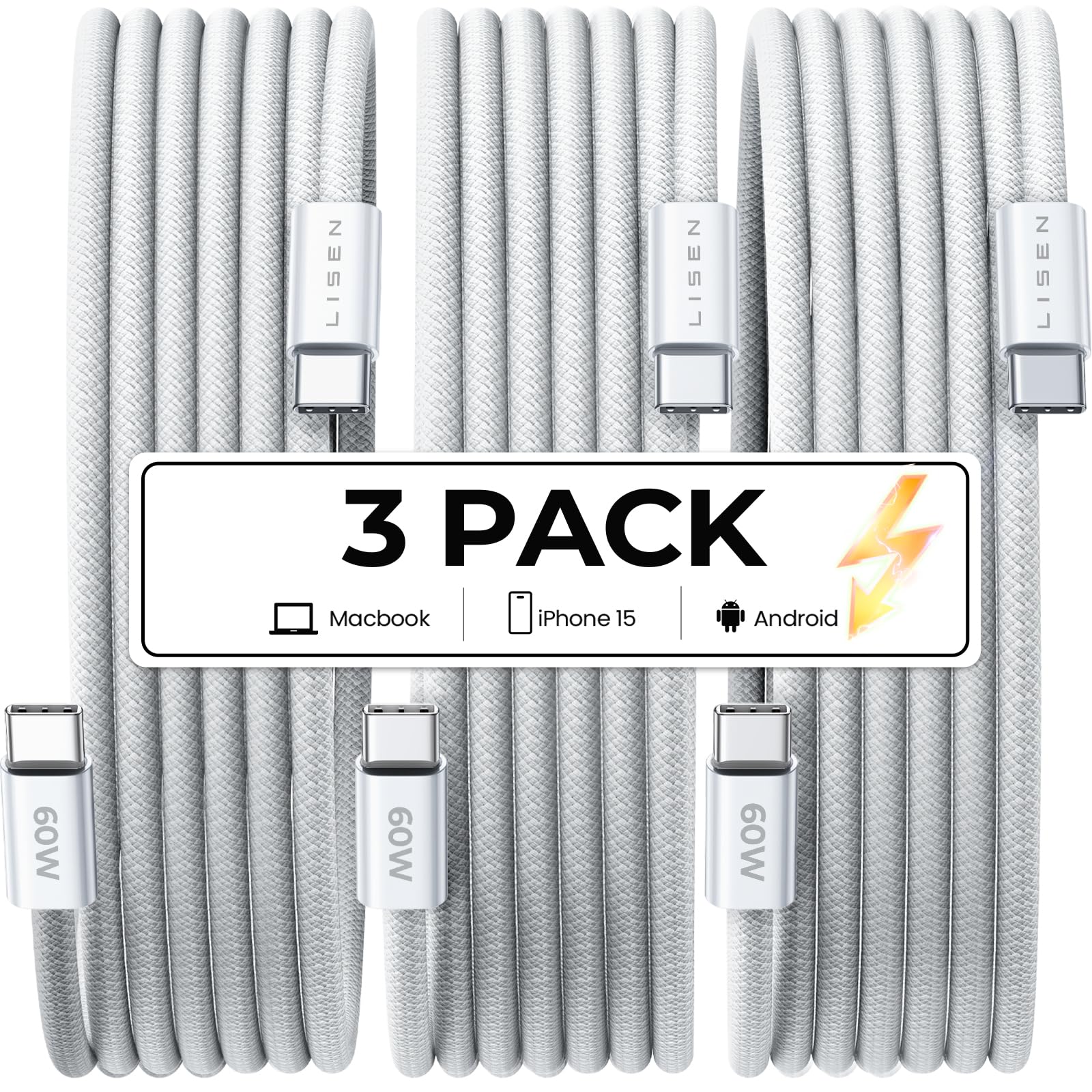 3-Pack LISEN 6.6 60W USB-C to USB-C Charger Cables $5